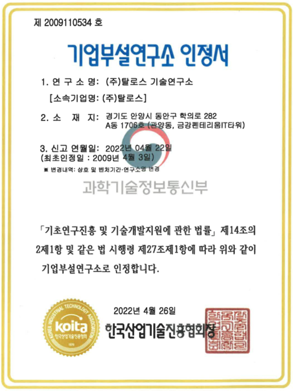 | ȸ»ç¸í | ÁÖ½Äȸ»ç Å»·Î½º (Talos Co., Ltd.) |